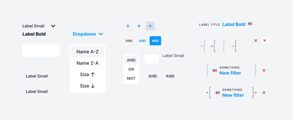 • Organisms: Form sections, filter panels, tables