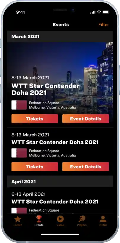 Integrated seat selection and purchase for global WTT events. Hassle-free access for fans attending matches.